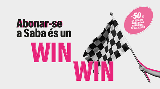 Ara, ser abonat de Saba és un WIN WIN! Perquè guanyes per gaudir d'una plaça al teu pàrquing habitual i també guanyes per gaudir d'un 50% de descompte a les teves estades a la resta de pàrquings Saba i Bamsa. Doble WIN, doble avantatges!